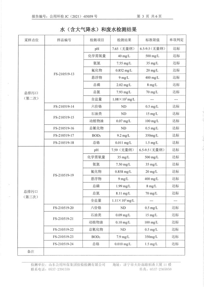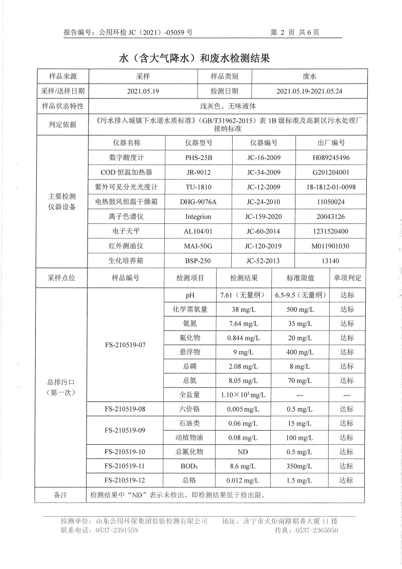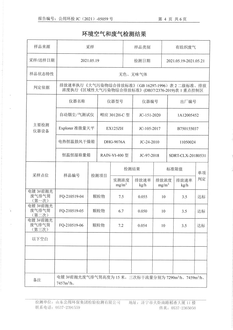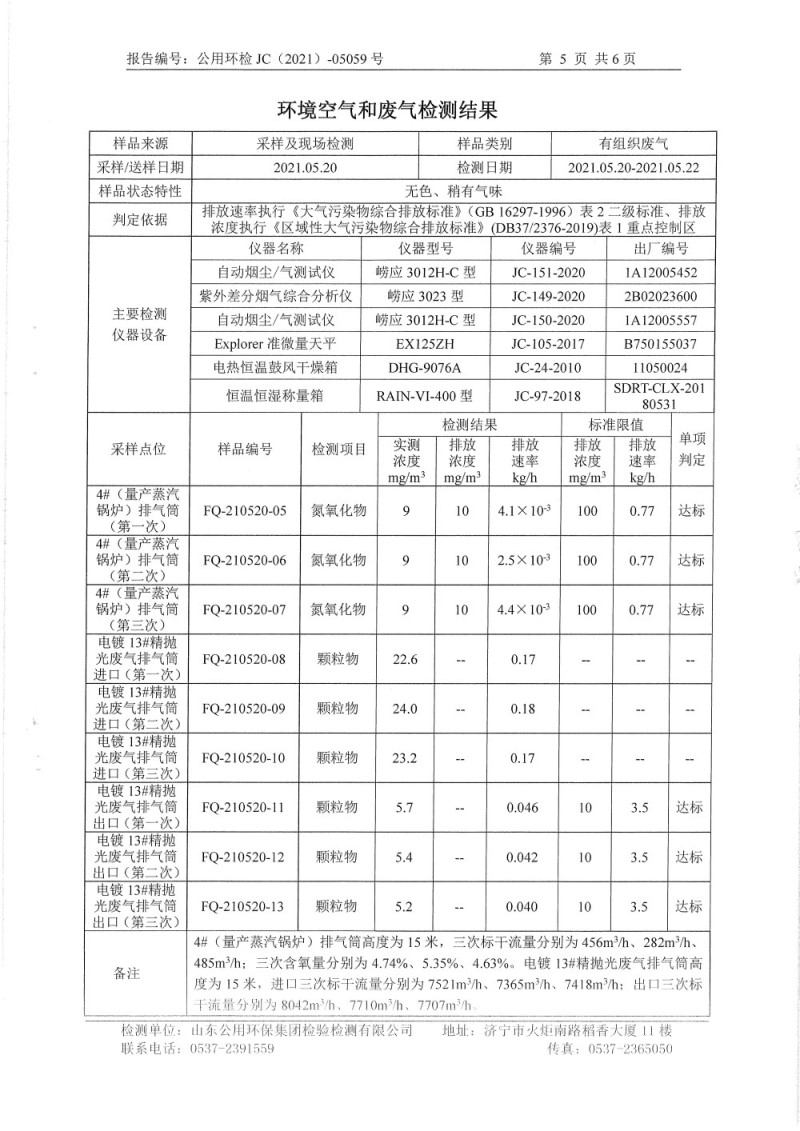 2021年5月檢測報(bào)告氮氧化物半年度檢測生活污水電鍍前 精拋光顆粒物