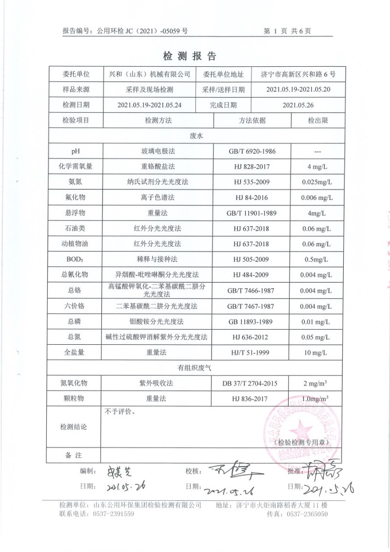 2021年5月檢測報(bào)告氮氧化物半年度檢測生活污水電鍍前 精拋光顆粒物