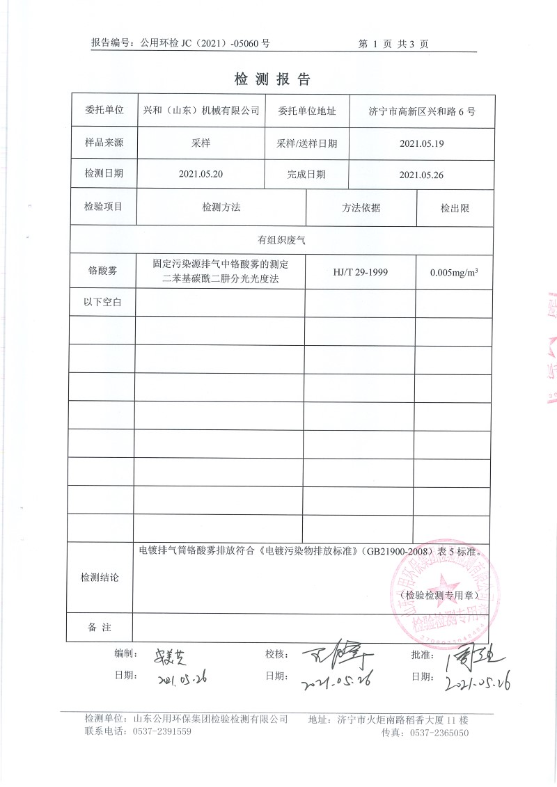 本文的關鍵字:5月鉻酸霧檢測報告