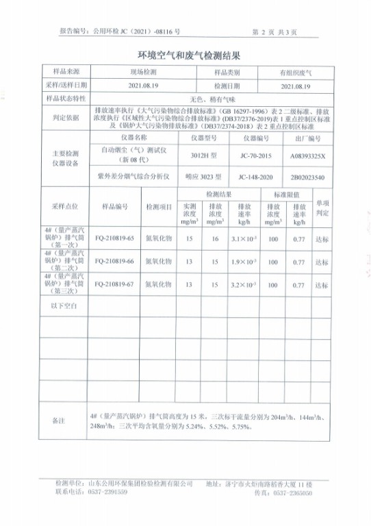 2021年8月蒸汽鍋爐4#排氣筒—氮氧化物檢測(cè)報(bào)告